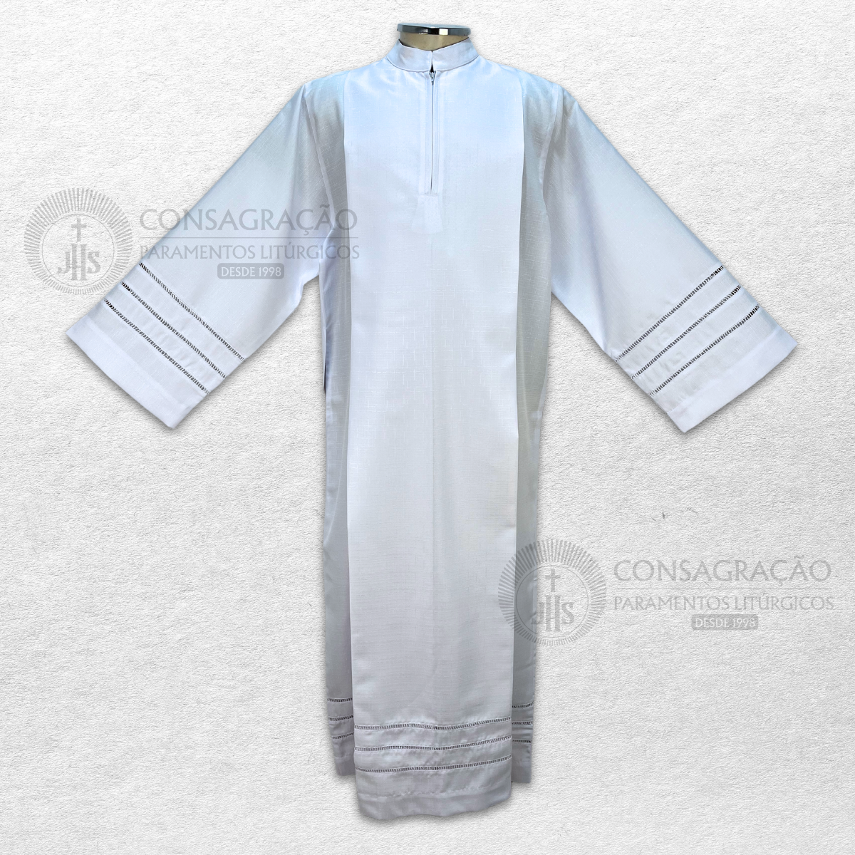A Consagração confecciona suas túnicas em tecidos nobres, priorizando bom caimento, levesa, maciez e fino acabamento, entregando assim uma peça de alta qualidade e com uma bela apresentação.